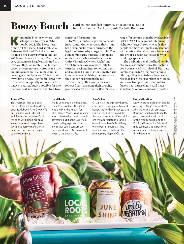 A one-page spread featuring five U.S.-based breweries that focus on hyper-local ingredients to make their beer. Entries include: Jester King, Scratch, Brewery of Broken Dreams, Holidaily, and Garden Path Fermentation. Page 10 of EatingWell Magazine's November 2021 print issue.